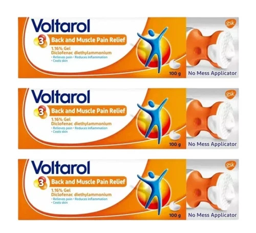 3 x Voltarol Back & Muscle Pain Relief 1.16% Gel with No Mess Applicator