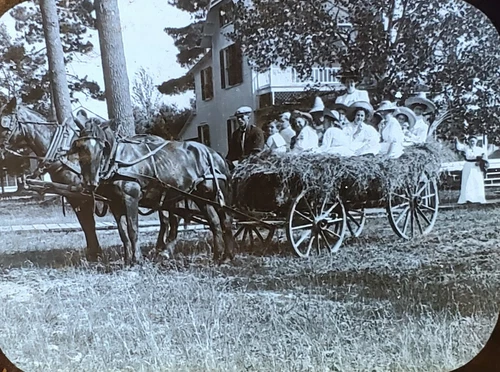 Hay Ride, Women in a Wagon, NO LABEL, Vintage Magic Lantern Glass Slide