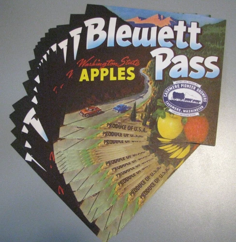 Original 25 BLEWETT PASS apple crate labels Cashmere WA cars wagon - wholesale