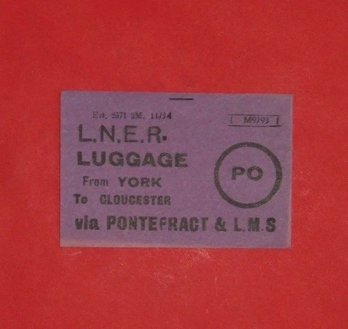 2 OFF VINTAGE L N E R LUGGAGE LABEL YORK TO GLOUCESTER & YORK TO TORQUAY