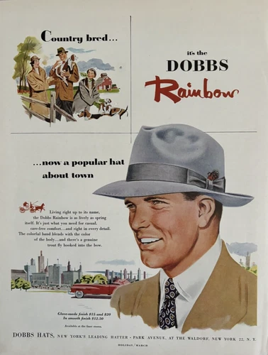 1940s Dobbs Hats Rainbow Park Ave Waldorf NY Country Bred Vintage Print Ad