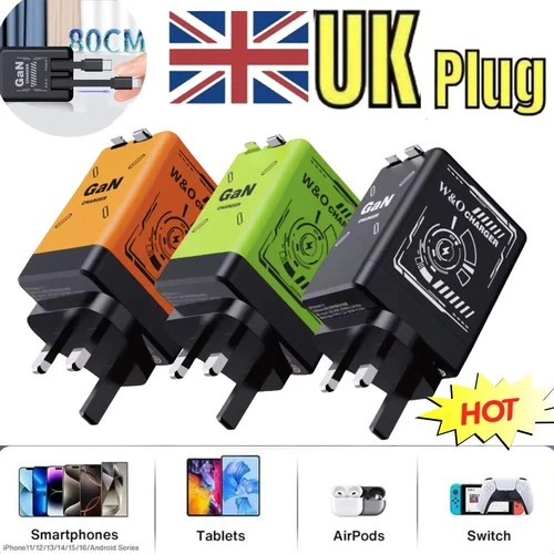 120w W&O 2 in 1 Gan Charger Type C, Retractable Wall with Fast Charging Line NEW