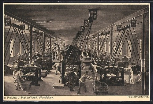 Postcard Wandsbeck, Reichardt cocoa factory, porcelain rolling mills