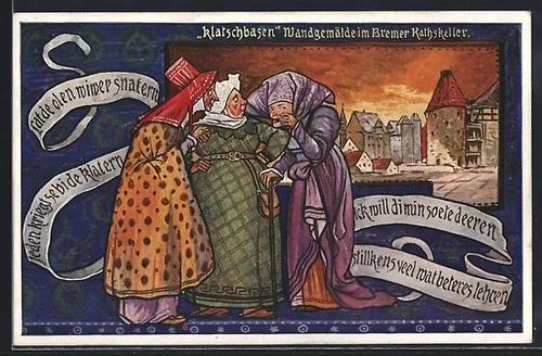 Postcard Bremen, mural in Bremen council cellar, gossip bases