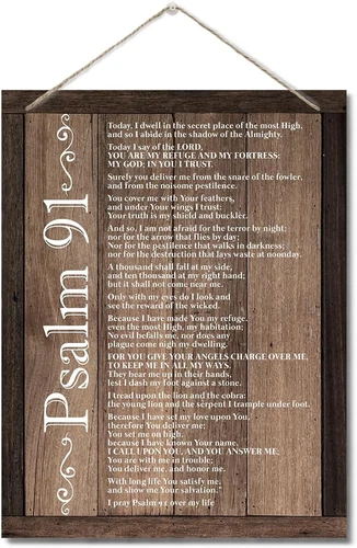 Inspirational Wood Art Signs, Psalms 91 Wall Sign, Hanging Printed Wall Plaque W