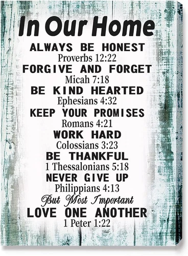 Bible Verse Canvas Wall Art,In Our Home Scripture Christian Canvas Wall Decor,In