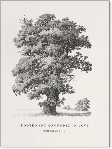 Modern Christian Bible Verses Canvas Wall Art Retro Ephesians 3:17 Tree Sketch P