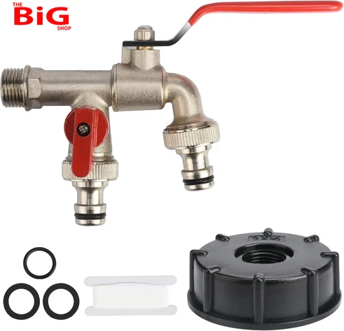 Double Garden Tap 1/2" with IBC Tank Adapter, Solid Brass Antifreeze Tap, Outdoo