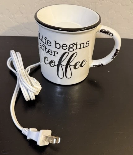 Scentsy Life Begins After Coffee Mug Electric Wax Warmer White Black New No Box