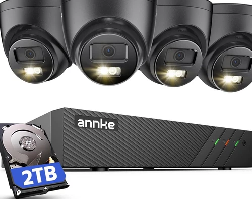 ANNKE 3K PoE CCTV Camera System Outdoor, 4x Wired Security IP Spotlights Black