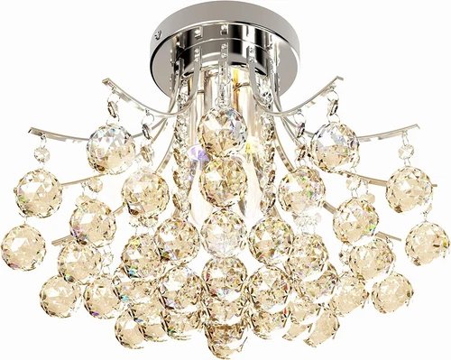 Crystal Balls Chandelier Flush Mount Ceiling Droplet Pendant Silver 3 Light Lamp
