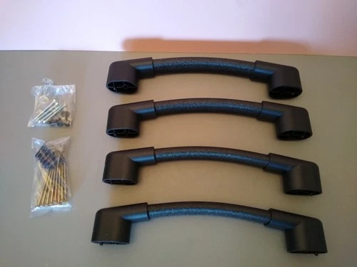 Four black industrial-style grab handles with eight fixing screws and wall plugs