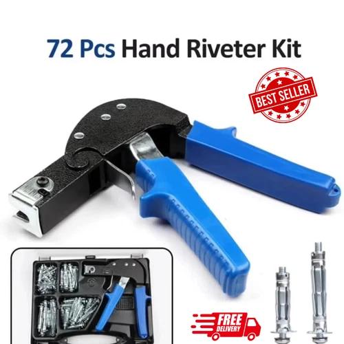 72pc Setting Tool Gun Hollow Cavity Wall Plug Anchor Plasterboard Fixings M4 M5