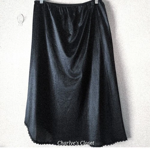 Vtg Warner's Black Lace Trim Midi Slip Skirt L Indie Festival Vamp Ethereal Goth