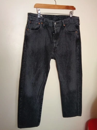 Mens Levis 501 Black Washout Denim Jeans 34/30 Distressed Wash Button Fly