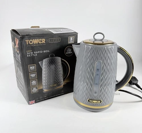 Tower Empire Grey Kettle, 1.7 Litre Kettle with Rapid Boil T10052GRY