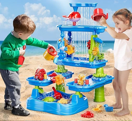 4-Tiers Large Water Table, Kids Sand & Water Play Table Outdoor Summer Beach Toy