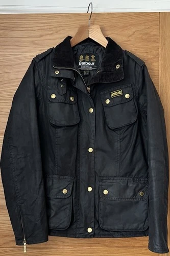 Barbour International Fins Waxed Jacket - Black - UK 10 - VGC