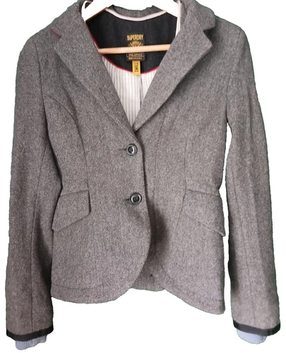Superdry Jacket Womens Grey Smart Casual Wool Blend Office Wear Tailoring Small