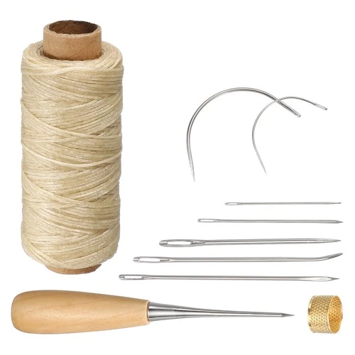 110 Yards 0.8mm 150D Leather Sewing Waxed Thread Cord Kit, Khaki