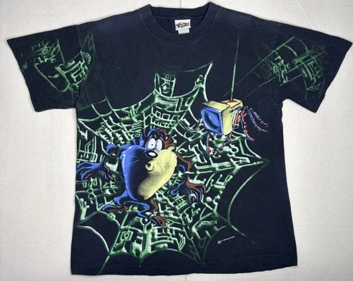 Vintage 1996 Looney Tunes Tasmanian Taz Devil Stuck On The Web Size Large Shirt