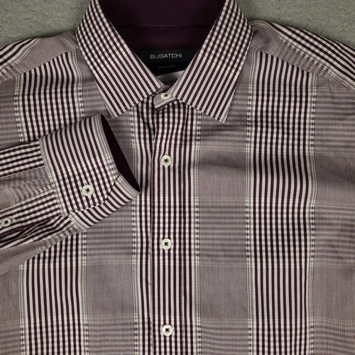 Bugatchi Uomo Shirt Mens Medium Red Plaid Shaped Fit Button Up Long Sleeve