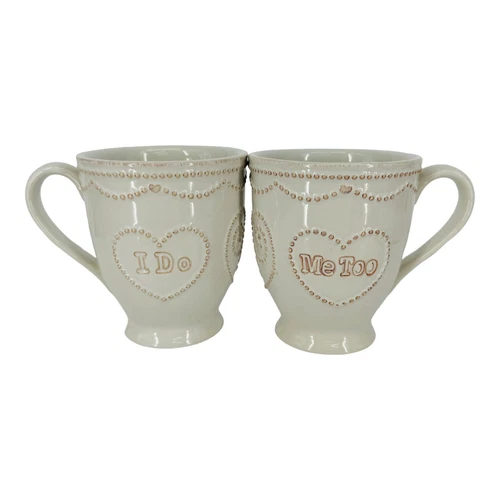 Lenox French Perle Pattern Coffee Mugs I Do Me Too Set of 2 Wedding Anniversary
