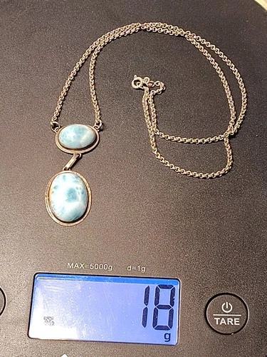 Rare Vintage Italian Double Larimar Stone 925 Sterling Silver Necklace Pendant