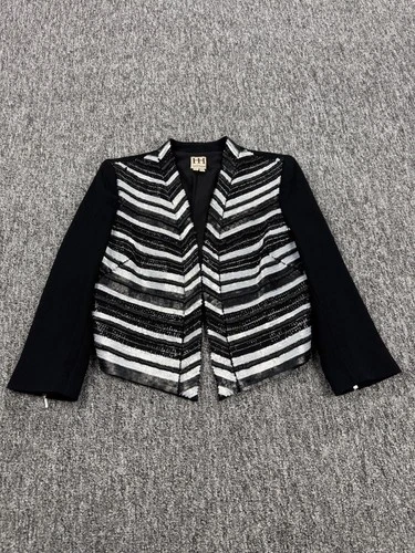Haute Hippie Jacket Women Medium Black Silver Sequin Chevron Striped Crop Blazer
