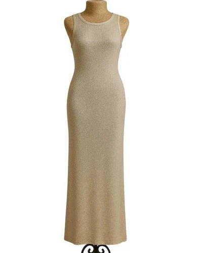 House Of Harlow 1960 Champagne Knit Sequin Slimming Sleeveless Maxi Dress Sz Sm