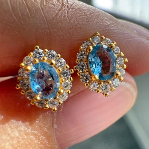 925 Sterling Silver Earrings 4x3mm Natural Blue Zircon Gemstone Jewelry Cute NEW