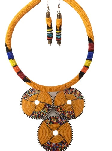 African Masai Zulu Necklace Earing Beads Handmade Tribal Jewellery Orange Multic
