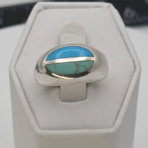 Vintage NF Thailand Ring Turquoise Howlite Inlaid 925 Sterling Silver Size 7