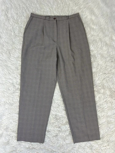 Requirement Womens Plus Size 16 Plaid Vintage 90s Pleated Trouser Brown Pants