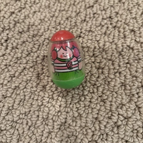 Vintage 1973 Weeble Wobble Red Hair Girl with Green Pants Pink Stripe Top
