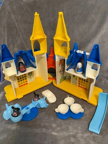 Disney 1977 Mickey Mouse Magic Kingdom Weebles Castle, Dumbo, Teacups, 4 Weebles