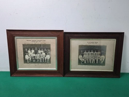 Framed Pair Antique 1913/14 Team Pelsall Wesley Cricket Club Welsh Tour Photos