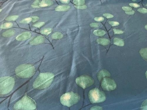 WEST ELM Cotton Queen/Full Duvet- Deep Blue With Multicolor Eucalyptus Leaves