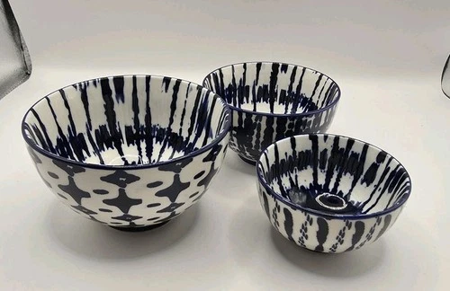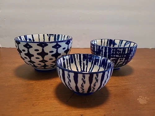 West Elm Indigo Tie-Dye Nesting Bowls 3 Blue White Japanese Inspired