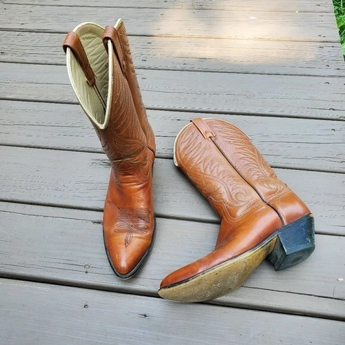 Vintage 90s y2k Whiskey Brown Leather Western Cowboy Motorcycle Work Boots 9.5