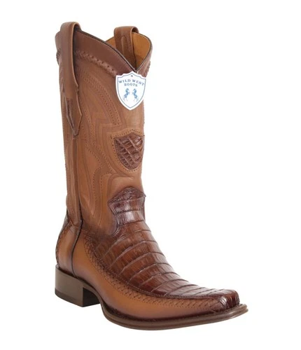 Wild West Men's Genuine Caiman Belly With Deer Western Boots European Square Toe