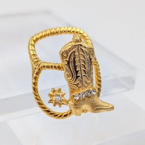 Gold Tone Cowboy Boot Scarf Slide Rhinestone Accents Western Cowgirl Festival