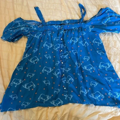 Cruel Girl NWTS open shoulder Cow Cowgirl Western Show Shirt! Medium Pearl Snap