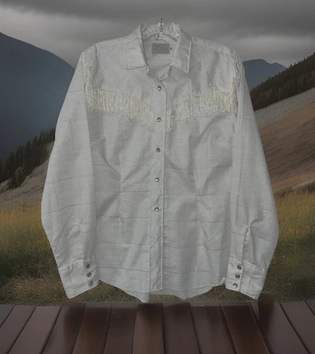BAR C RANCHWEAR Long Tail Western Show Shirt Size 38 Fringe Pearl Buttons VTG
