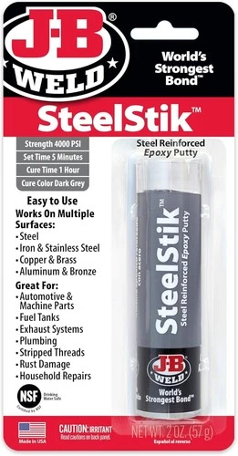 J-B Weld SteelStik Epoxy Putty For All Metal Surfaces Wet Dry Chemical Resistant