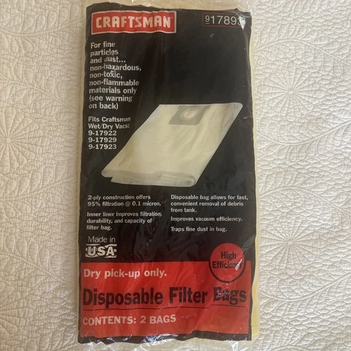 2 Pack- Craftsman 9-16 Gallon Wet/Dry Vac High-Efficiency Filter Bags 917893 NEW