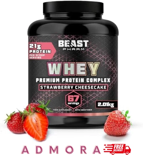 Beast Whey Protein Powder 2kg - 67 Servings - High 21g per Shake - Strawberry