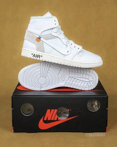 Nike Air Jordan 1 Off-White White High Top Sneakers Light Blue Beige