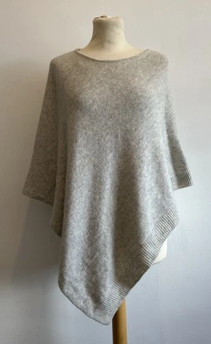 The White Company Wool & Cashmere Knitted Poncho UK M/L Light Grey Marl
