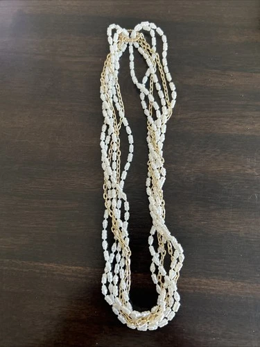 Vtg Fresh Water Rice Pearls Multi-strand Necklace gold toned clasp Choker 20"